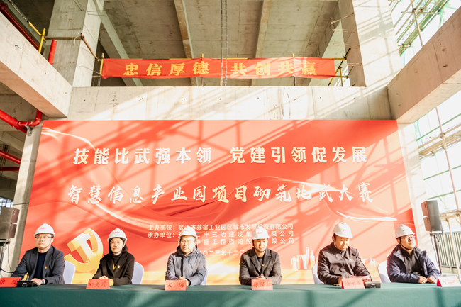 12月6日下午,園區(qū)智慧信息產(chǎn)業(yè)園開展“技能比武強本領(lǐng) 黨建引領(lǐng)促發(fā)展”主題的砌筑比武活動,園區(qū)機關(guān)及直屬單位黨委副書記、管委會辦公室副主任宋海、園區(qū)國資國企黨委副書記、財政局副局長張保桐、園區(qū)規(guī)劃建設(shè)局副局長劉美霞、園區(qū)建設(shè)工程質(zhì)量安全監(jiān)督站副站長方東、城發(fā)公司管理層及全體黨員、智慧信息產(chǎn)業(yè)園項目參建團(tuán)隊參加本次活動,六組參賽隊伍分工明確,人員緊密配合,經(jīng)過激烈角逐,又快又好完成樣式圖案砌筑,決勝出綜合排名前三的隊伍,并為獲獎隊伍頒發(fā)獎品。