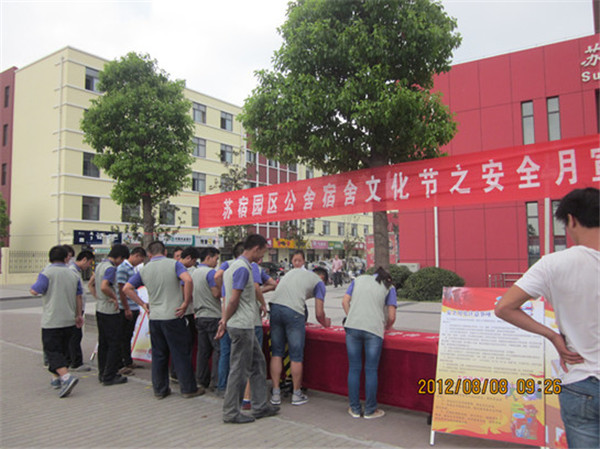 8月8日上午,在園區(qū)人才市場廣場開展“園區(qū)公舍宿舍文化節(jié)”活動(dòng),本次活動(dòng)通過展板、簽名等形式向公舍廣大住宿職工宣講消防安全及安全用電知識,此次活動(dòng)為即將開展的消防演練奠定了基礎(chǔ)。