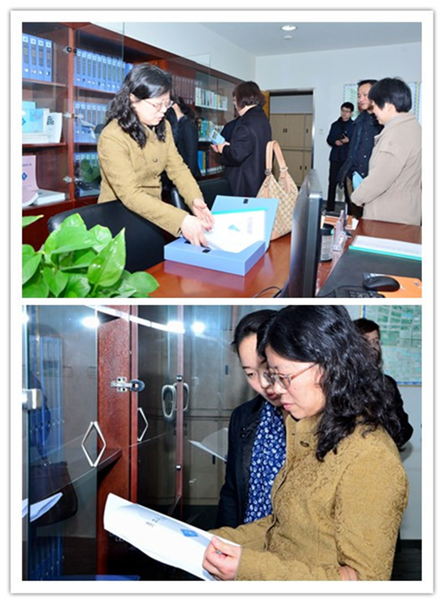 姜司長(zhǎng)一行在陳列室了解了公司發(fā)展歷程和取得的豐碩成果,在閱檔室查閱了公司檔案編研、臺(tái)賬等資料,對(duì)開(kāi)發(fā)公司檔案工作表示充分肯定,并提出了相關(guān)要求和希望。
