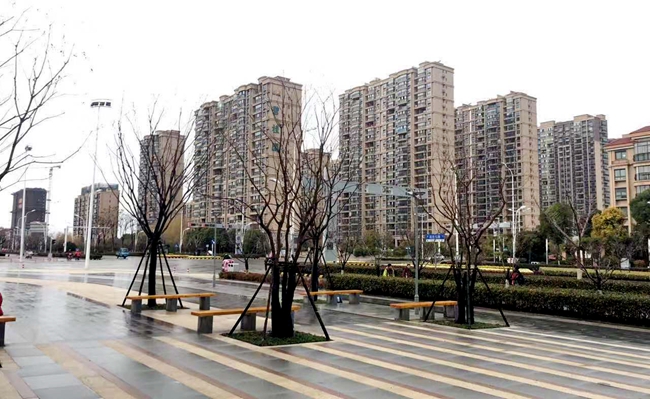 陽(yáng)澄鄰里中心景觀工程主要包括北側(cè)主廣場(chǎng)石材鋪裝和四個(gè)苗木組團(tuán)共同構(gòu)成,其中綠化組團(tuán)由主廣場(chǎng)樹陣、西側(cè)生態(tài)停車場(chǎng)綠化帶、鄰里中心主入口區(qū)及南側(cè)卸貨區(qū)。苗木主要有櫸樹、烏桕、香樟、樸樹、柿樹等,整體觀感做到四季有賞、落葉常綠分明。