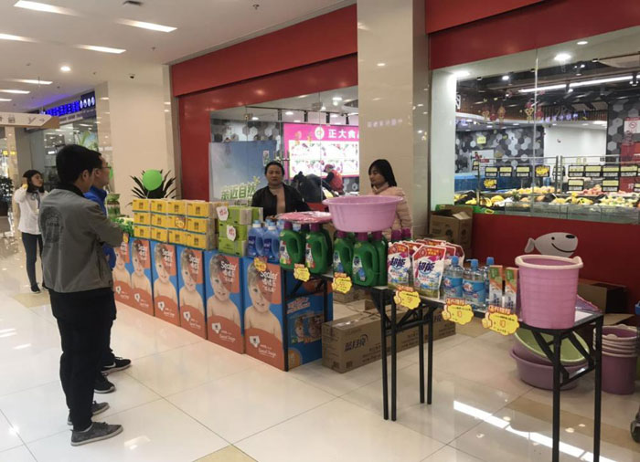 五一勞動(dòng)節(jié)期間,陽(yáng)澄鄰里中心聯(lián)合京東超市等入駐商家,在商場(chǎng)一樓大廳舉辦了一場(chǎng)為期三天的特賣活動(dòng)。