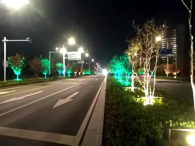 開發(fā)公司項(xiàng)目管理過程中,重點(diǎn)把控?zé)粼搭伾?、照度及燈具造型,在燈光運(yùn)用上主要使用白、黃、綠三色,突出西湖西路城市主干道的夜景效果。在施工中,克服冬雨季施工、大氣管控和車流量大等不利因素,嚴(yán)格控制施工工藝,打造高質(zhì)量工程。夜景工程亮燈后為園區(qū)南部區(qū)域夜景增光添彩,美化了園區(qū)環(huán)境、提高了園區(qū)品位。