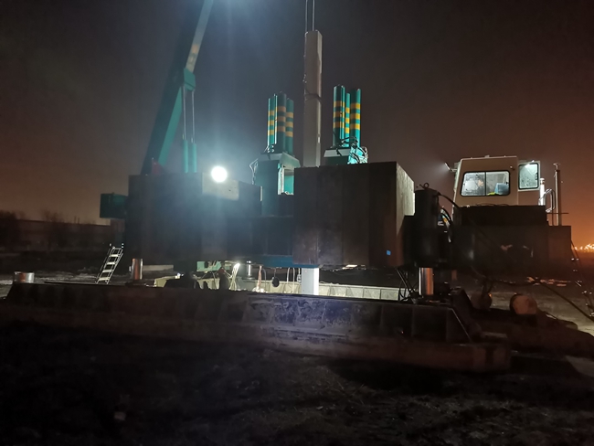 項目于2021年12月正式開工建設(shè),總樁長約4.7萬米。樁基工程是整個項目起步的關(guān)鍵工程,項目各參建單位緊密配合,面對時間緊、任務(wù)重、氣溫低、管控嚴(yán)等重重困難,施工不分晝夜,雨天依然堅持施工,最終確保了進(jìn)度計劃的實(shí)現(xiàn)。