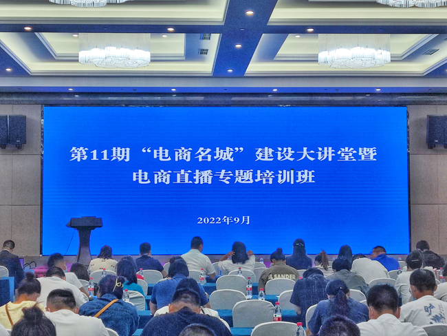 近日,由宿遷市商務(wù)局主辦的第 11 期“電商名城”建設(shè)大講堂暨電商直播專題培訓(xùn)活動在泗洪開課。園區(qū)組織電商園四通科技、光速傳媒等五家企業(yè)十余人參加了培訓(xùn)。