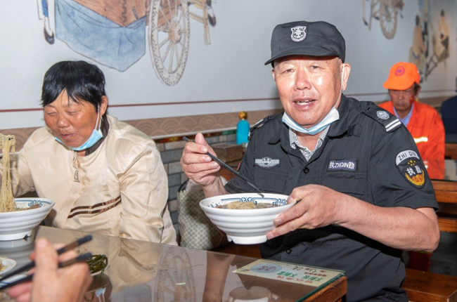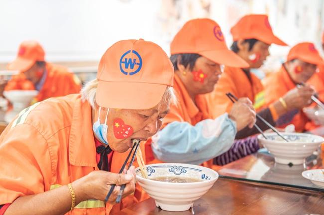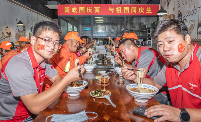 一碗“國慶面”,一份愛國情。當(dāng)一碗碗熱氣騰騰、香氣撲鼻的面條送到環(huán)衛(wèi)工人、快遞小哥等堅守在一線崗位上的工作人員手中,大家接過面條,享用著寓意美好的“國慶面”,每個人的臉上都洋溢著幸福和快樂的笑容。大家用最樸素最平常的食物,表達(dá)了對祖國母親生日快樂的真摯情感。