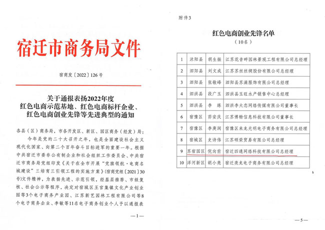 黨的二十大召開之年,市商務(wù)局為擦亮“電商名城”牌子,激發(fā)“電商名城”發(fā)展新動(dòng)能,12月15日,組織紡織服裝產(chǎn)業(yè)鏈黨建工作暨“黨旗領(lǐng)航·電商名城建設(shè)”推進(jìn)會(huì)。園區(qū)企業(yè)家四通科技董事長倪向前獲得“紅色電商創(chuàng)業(yè)先鋒”榮譽(yù)稱號。