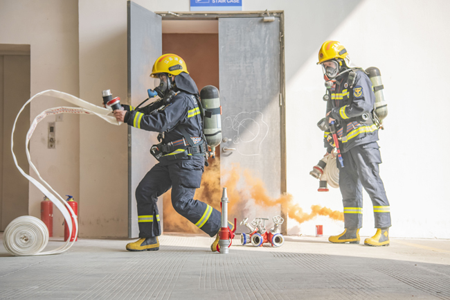 此次演練完全按照“真實(shí)模擬火場、現(xiàn)場領(lǐng)受任務(wù)、無預(yù)案戰(zhàn)斗展開”模式進(jìn)行,災(zāi)情假設(shè)為B10二層服裝加工企業(yè)起火,該企業(yè)立即啟動自救預(yù)案并撥打消防報(bào)警電話。園區(qū)消防應(yīng)急救援大隊(duì)接警后,一次性調(diào)派2輛消防車11名消防戰(zhàn)斗員趕赴處置,演練過程中按照救人第一的指導(dǎo)思想,科學(xué)施救,內(nèi)攻滅火、內(nèi)攻搜救、外圍控火、緊急撤離等技戰(zhàn)術(shù)措施控制火勢,消滅火災(zāi)。