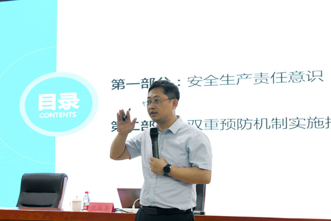 本次培訓(xùn)邀請國家注冊安全工程師祝成軍進行授課。培訓(xùn)會上,祝成軍圍繞開展安全生產(chǎn)雙重預(yù)防體系建設(shè)工作的意義,相關(guān)法律法規(guī)、標準等內(nèi)容進行了詳細講解,并結(jié)合具體事故案例,對如何理解雙重預(yù)防體系、如何劃分作業(yè)單元、如何進行風(fēng)險辨識與評價等內(nèi)容進行了專門的講解。