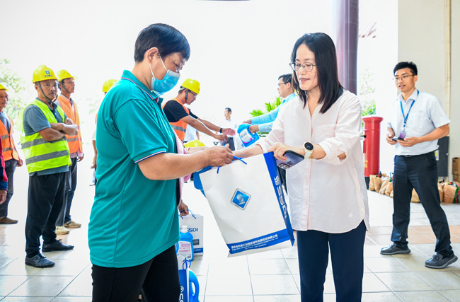 “大家在做好本職工作同時(shí),注意保重身體,防暑措施一定要做到位,確保安全生產(chǎn)。”在明日鄰里中心慰問現(xiàn)場,李蘭霞與物業(yè)員工們親切交談,感謝他們?yōu)楣景l(fā)展和民生保障付出的辛勤努力,反復(fù)叮囑大家要提高夏日防暑意識(shí),做好自我防護(hù),確保以更好的狀態(tài)投入到工作中?,F(xiàn)場強(qiáng)調(diào)各部門要守牢安全底線,做好高溫時(shí)節(jié)各項(xiàng)工作,普及好防暑降溫和急救知識(shí),確保廣大一線職工的安全。