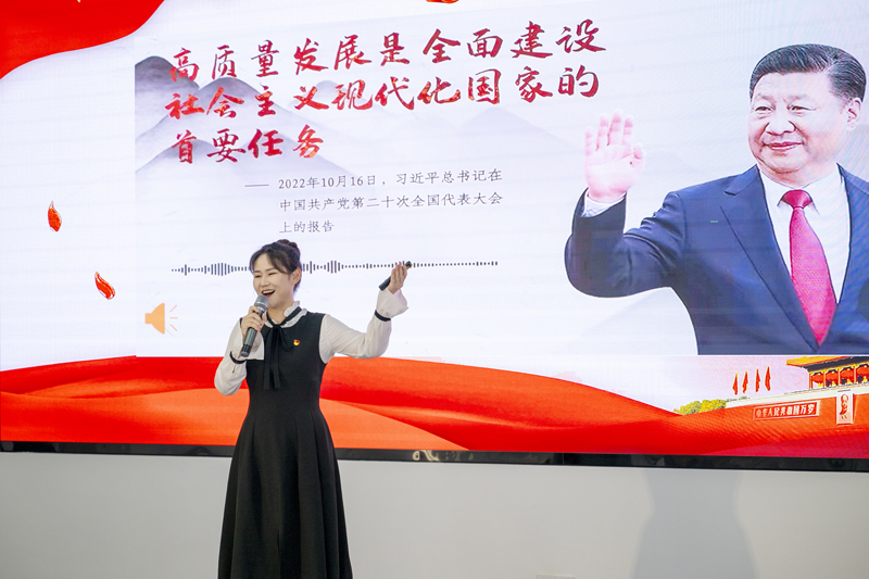 宣講比賽中,她聲情并茂,講述了園區(qū)十八年的發(fā)展歷程。從一片荒蕪之地的園區(qū)到高樓林立的現(xiàn)代化園區(qū),這十八年承載著園區(qū)人的奮斗精神,她說:“要深入學習貫徹黨的二十大精神,以青年人的責任與使命擔負起園區(qū)發(fā)展重任,‘二次創(chuàng)業(yè),再燃激情’,為拓園發(fā)展貢獻自己的青春與力量。”