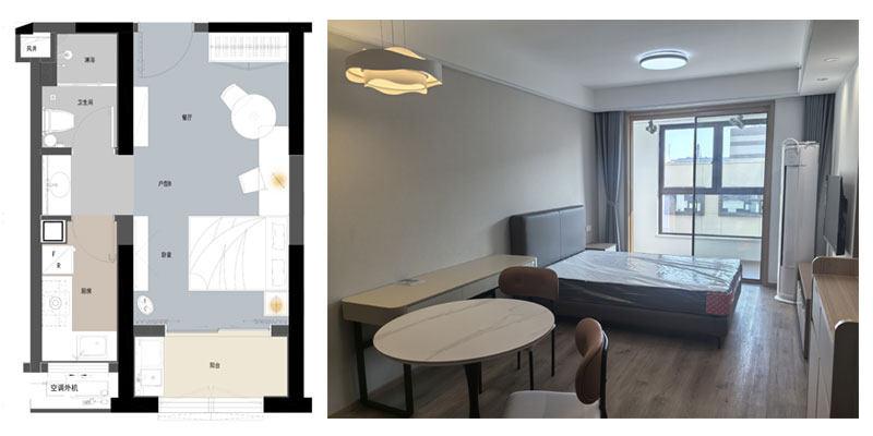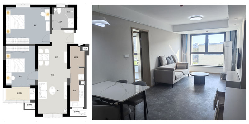 青年公寓一期3#白領公寓共三種戶型,A戶(2室1廳1廚1衛(wèi)面積84m2)44間、B戶(1室1廳1廚1衛(wèi),面積35m2)88間、C戶(1室1廳1廚2衛(wèi),面積72m2)44間,共計154間,裝修面積約1.3萬平方米。白領公寓旨在服務于入駐企業(yè)高精尖人才,是園區(qū)迄今為止已建成的單體建筑規(guī)模最大、配套設施最為完善的白領公寓,內(nèi)設廚灶、抽油煙機、櫥柜、床、書桌、衣柜、空調(diào)、冰箱及電視等基本生活設施,為入住人群提供拎包即住的便利。