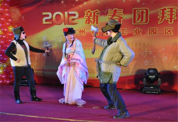 團(tuán)拜會(huì)在《年輕的朋友來相會(huì)》嘹亮的歌聲中拉開序幕,園區(qū)干部職工、客商代表自編自導(dǎo)自演的《招商狂想曲》、《蘇宿論壇》等一個(gè)個(gè)精彩的文藝節(jié)目,博得了與會(huì)人員陣陣掌聲,愉悅、喜慶的氛圍讓大家感受到園區(qū)一家人的溫馨。