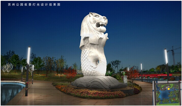(圖:蘇州公園“魚(yú)尾獅”夜景燈光設(shè)計(jì)效果圖)