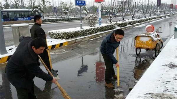 園區(qū)城管部門和建發(fā)公司迅速動(dòng)員部署,啟動(dòng)掃雪應(yīng)急預(yù)案,建發(fā)員工和環(huán)衛(wèi)工人不畏嚴(yán)寒,早晨六點(diǎn)鐘就走上街頭路口,揮舞著鐵鍬和笤帚,一點(diǎn)點(diǎn)地將積雪清掃干凈,經(jīng)過三小時(shí)的掃雪作業(yè),園區(qū)青海湖西路、玄武湖西路、陽(yáng)明山大道等主干道已基本完成清雪工作,切實(shí)保障了市民出行。