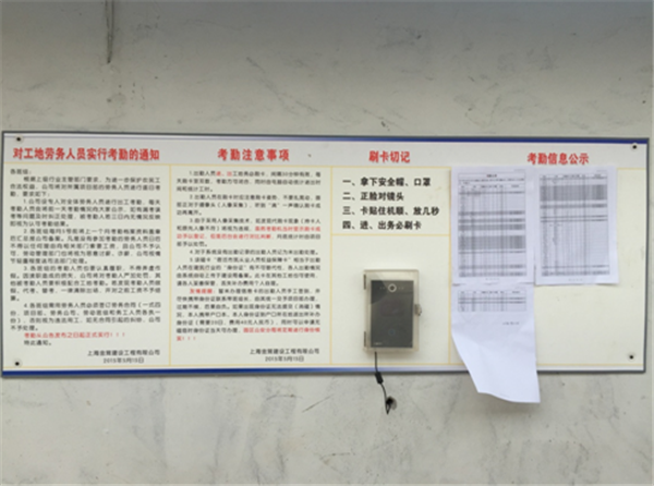(圖為園區(qū)夢家園項目農民工實名考勤處現場)