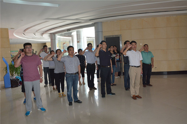 全體黨員干部參觀了紀(jì)念館,展館里大量的歷史文獻(xiàn)、珍貴的革命文物和各個(gè)時(shí)期的新聞圖片、資料再現(xiàn)了新四軍軍部在黃花塘運(yùn)籌于帷幄之中,決勝于大江南北的豐功偉績。在紀(jì)念館大廳,全體黨員面對鮮紅的黨旗,莊嚴(yán)地舉起右拳齊聲宣誓,重溫了入黨誓詞。