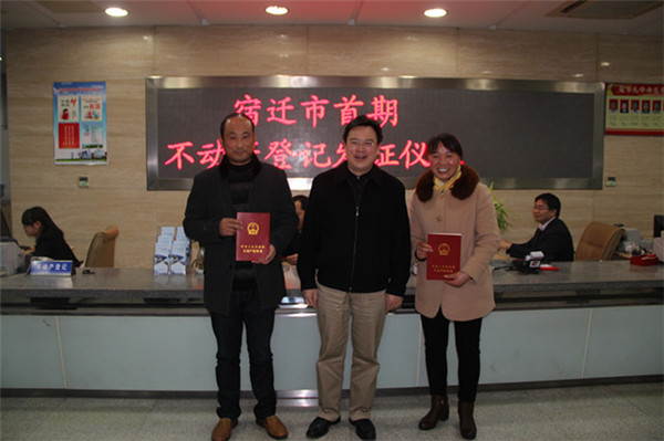 市國土局局長趙昌說:“園區(qū)不動產(chǎn)登記走在全市前列,今天宿遷市首期不動產(chǎn)權(quán)證書的正式頒發(fā),標(biāo)志著不動產(chǎn)統(tǒng)一登記制度在園區(qū)范圍內(nèi)全面啟動?!?