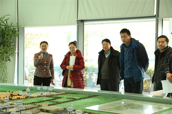 調(diào)研組先參觀了管委會(huì)一樓沙盤(pán),駱敏詳細(xì)介紹了園區(qū)的建設(shè)背景、發(fā)展情況。