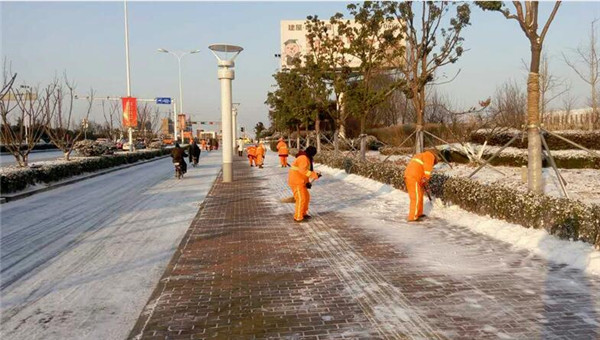 天寒地凍路積雪 掃雪除冰保暢通