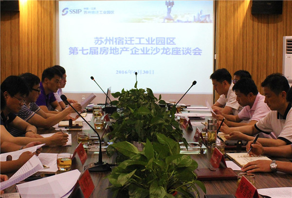 6月30日,園區(qū)第七屆房地產(chǎn)企業(yè)沙龍座談會在翡翠藍灣項目部召開。園區(qū)黨工委委員、管委會副主任、規(guī)劃建設局局長許紹杰出席座談會,各相關部門、宿遷市蘇州外國語學校及各房地產(chǎn)企業(yè)相關負責人參加會議。
