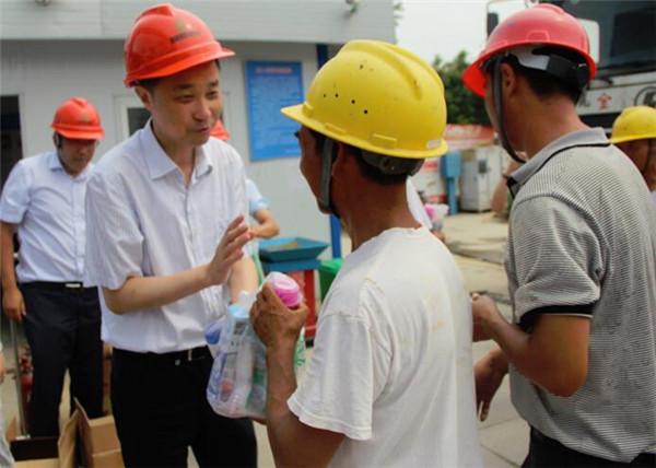 許紹杰仔細詢問了一線工人工作、生活情況,給他們送上毛巾、礦泉水、沐浴露等防暑降溫用品,并要求施工單位根據(jù)夏季高溫氣候特點及時調(diào)整作息時間,認真落實防暑降溫措施,充分保證工人的休息,防止中暑,確保施工安全。