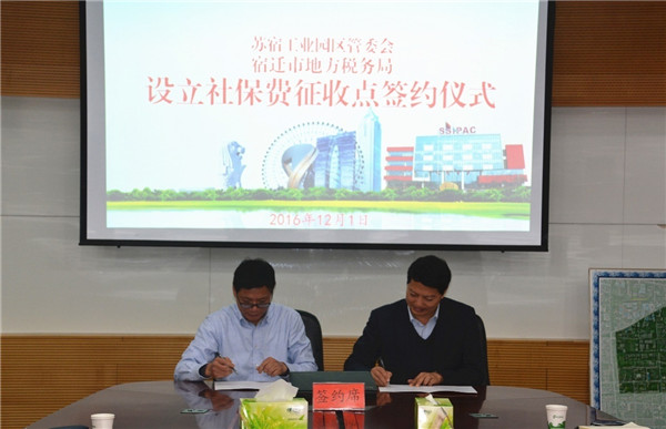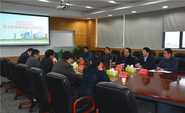 12月1日下午,園區(qū)管委會(huì)與宿遷市地稅局舉行設(shè)立社保費(fèi)征收點(diǎn)簽約儀式。副市長(zhǎng)、園區(qū)黨工委書記、管委會(huì)主任方文浜,市地稅局局長(zhǎng)王月明,園區(qū)工委領(lǐng)導(dǎo)戈亮、高揚(yáng)出席簽約儀式。